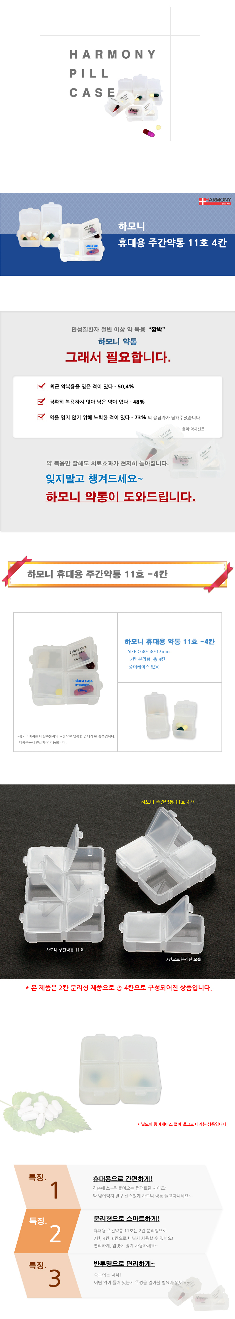 179 X 179하모니 휴대용 주간 약통 케이스 14호